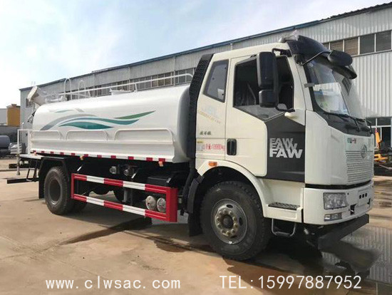上装配置:罐体采用Q235优质碳钢板制作,容积:14立方米,标准配置:专用洒水泵、前冲、后洒、侧喷、花洒、平台高炮、自流阀及消防接头各1个,水管2根。
