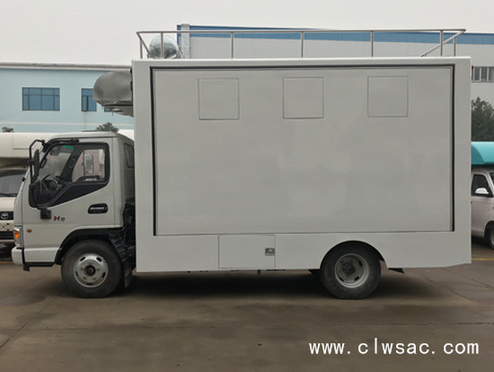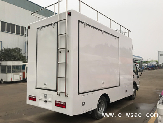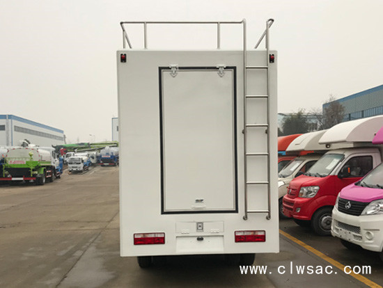 厢体采用内不锈钢外玻璃钢复合材质,含天窗、不锈钢爬梯、护栏、净水箱、污水箱、水路系统、电路系统、增压泵、蒸馏车、双眼灶台、不锈钢排烟系统、冷柜、不锈钢操作台、菜架、洗手池等。