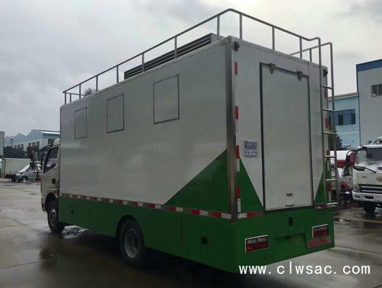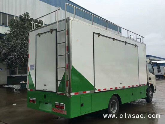厢体采用内不锈钢外玻璃钢复合材质,含天窗、不锈钢爬梯、护栏、净水箱、污水箱、水路系统、电路系统、增压泵、蒸馏车、双眼灶台、不锈钢排烟系统、冷柜、不锈钢操作台、菜架、洗手池等。