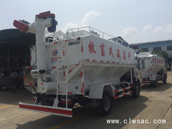 散装饲料运输车是运输饲料的专用车辆,随着养殖业由农户分散饲养型向自动化、产业化发展,袋装饲料和单品种、小运量的散装饲料已无法满足大面积养殖场对饲料的储存和需求,且袋装饲料的灌装和饲料袋的拆卸增加了成本和劳动力,因此各饲料厂、养殖场都需要一种低成本、高效率的运输散装饲料的车型。程力威牌CLW系列电动式散装饲料运输车就是这样一种能够同时装载运输1~3种不同饲料,并能通过电动控制系统有效地实现向8.5米高的储料塔中自动卸料的专用汽车。