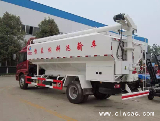 散装饲料运输车是运输饲料的专用车辆,随着养殖业由农户分散饲养型向自动化、产业化发展,袋装饲料和单品种、小运量的散装饲料已无法满足大面积养殖场对饲料的储存和需求,且袋装饲料的灌装和饲料袋的拆卸增加了成本和劳动力,因此各饲料厂、养殖场都需要一种低成本、高效率的运输散装饲料的车型。程力威牌CLW系列电动式散装饲料运输车就是这样一种能够同时装载运输1~3种不同饲料,并能通过电动控制系统有效地实现向8.5米高的储料塔中自动卸料的专用汽车。