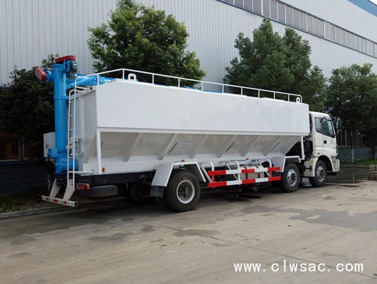 程力威牌CLW系列散装饲料运输车由底盘、箱体、螺旋输送系统、电动控制系统、旋转装置、附属装置等结构组成。