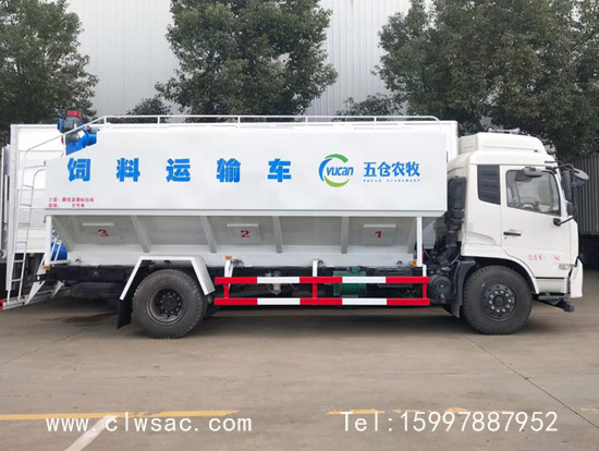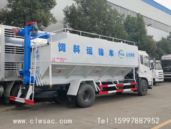 散装饲料运输车,又名散装饲料车,饲料运输车。主要用于从饲料厂向畜牧场、养禽场及饲料加工用户运输散装饲料成品或饲料生产原粮,同时它也可用来运输某些无腐蚀性粉粒状原料,如制药厂粉料和粮库周转。