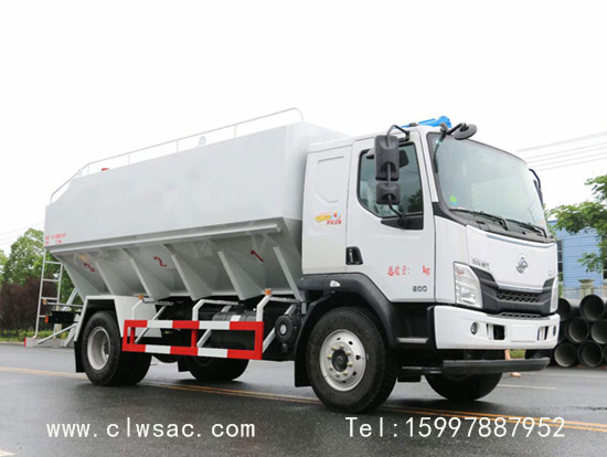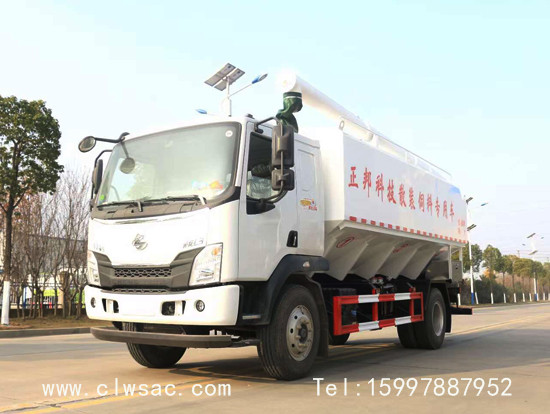 散装饲料运输车,又名散装饲料车,饲料运输车。主要用于从饲料厂向畜牧场、养禽场及饲料加工用户运输散装饲料成品或饲料生产原粮,同时它也可用来运输某些无腐蚀性粉粒状原料,如制药厂粉料和粮库周转。