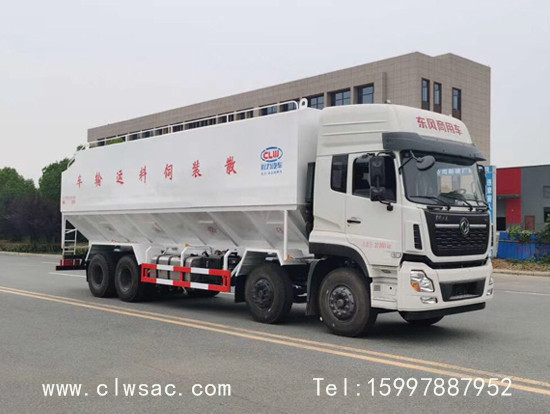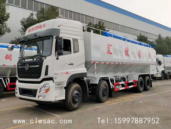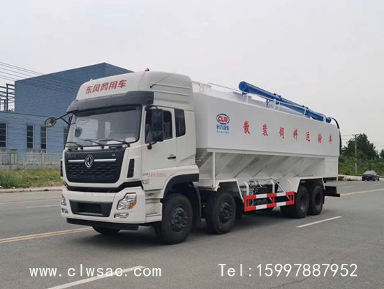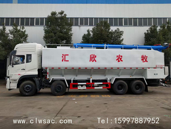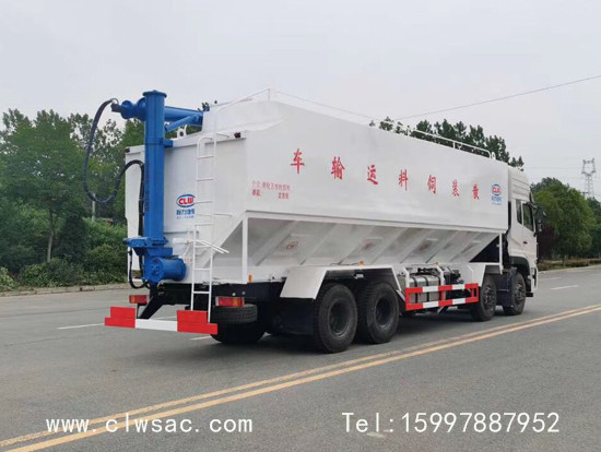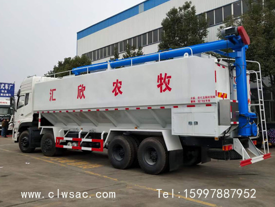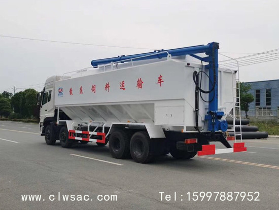 散装饲料运输车,又名散装饲料车,饲料运输车。主要用于从饲料厂向畜牧场、养禽场及饲料加工用户运输散装饲料成品或饲料生产原粮,同时它也可用来运输某些无腐蚀性粉粒状原料,如制药厂粉料和粮库周转。