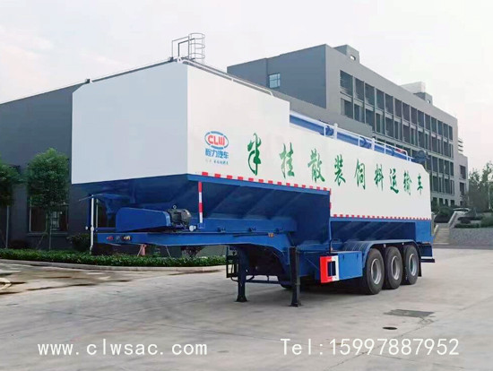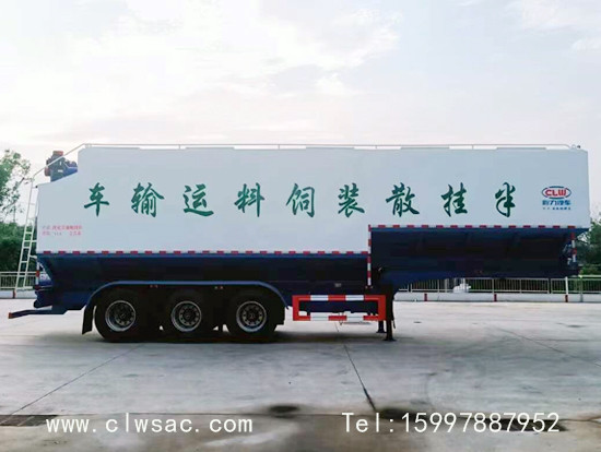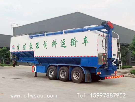 散装饲料运输车,又名散装饲料车,饲料运输车。主要用于从饲料厂向畜牧场、养禽场及饲料加工用户运输散装饲料成品或饲料生产原粮,同时它也可用来运输某些无腐蚀性粉粒状原料,如制药厂粉料和粮库周转。