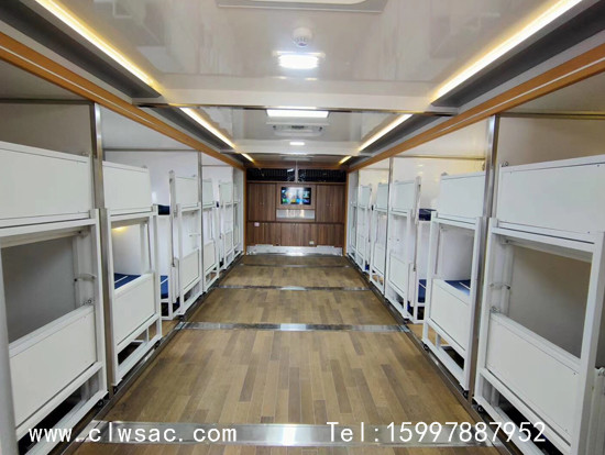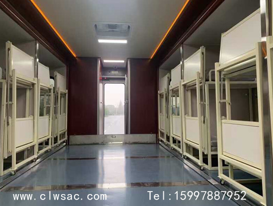 宿营车是一种针对部队官兵进行紧急兵员运输时,能够提供临时指挥和休息场所,并能够满足各种野外作业和考察要求的车辆。宿营车主要由二类汽车底盘、宿营方舟、宿营设施包括床位,卫生间,空调系统,影视系统,电气系统,安全系统等组成,使官兵们在野外能够有一个安全、卫生、舒适的就寝环境,我厂生产的各类宿营车能够适应普通公路、沙石路、简易公路以及越野等特殊使用环境。我厂于2017年试制第一台宿营车下线,也成批量交付给军队、消防队、企事业单位各种类型的宿营车。