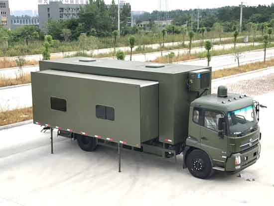 宿营车是一种针对部队官兵进行紧急兵员运输时,能够提供临时指挥和休息场所,并能够满足各种野外作业和考察要求的车辆。宿营车主要由二类汽车底盘、宿营方舟、宿营设施包括床位,卫生间,空调系统,影视系统,电气系统,安全系统等组成,使官兵们在野外能够有一个安全、卫生、舒适的就寝环境,我厂生产的各类宿营车能够适应普通公路、沙石路、简易公路以及越野等特殊使用环境。我厂于2017年试制第一台宿营车下线,也成批量交付给军队、消防队、企事业单位各种类型的宿营车。