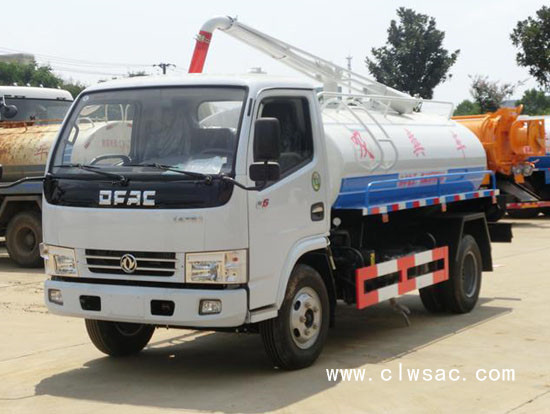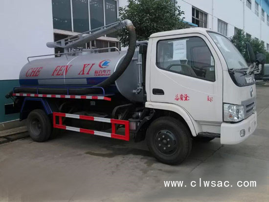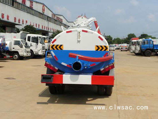 2、吸粪车由取力器、传动轴、真空吸粪泵、水气分离器、油气分离器、多路换向阀、吊杆、粪罐、放粪阀、吸粪枪、清水箱、视粪窗、真空压力表、管网系统等组成。