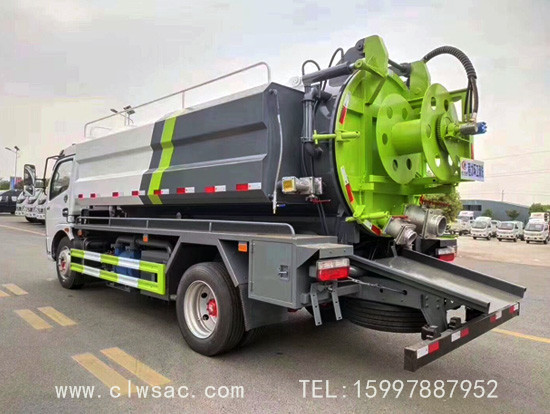 上装配置:清水罐容积:3立方米,污水罐容积:7立方米,罐体材质采用Q235武钢6MM厚碳钢板,标配采用亿丰大功率8吨真空泵,油水分离器,防溢阀,视污管,配一根6米吸污管,罐体封头一次压铸成型,罐体具有举升功能,后门液压开启,配高压泵:天津通洁(选装意大利进口高压泵)压力:22Mpa 、流量:215L/min 、胶管长度:60m、卷管力:1800 N 、胶管内径:φ19 mm、接头型式 :1-10 、卷管速度:0-25m/min 、孔夹角度:15°,25° 推进力:≥180 N 。随车配备10个不同型号高压喷头。1-5号用于管道疏通,6-10号用于管道清洗。配有高压水泵的水罐车,清洗城市下水道的沉积物,疏通下水道。也可用于清洗工业排液管道、壁面等,该车可加装洒水功能兼作洒水、运水和冲洗公路用,紧急时可用于救火。