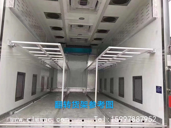 【翻转货架】厢体两侧手动翻转堆货货架;