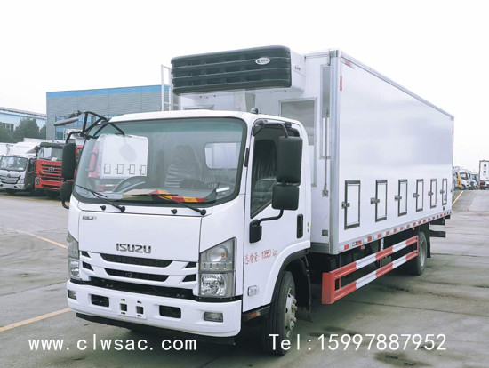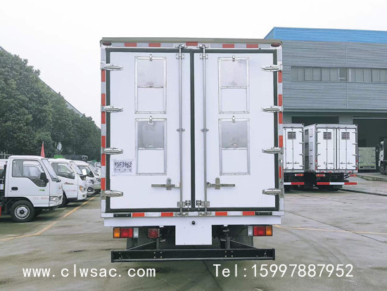 (2)厢板材质:内外壁板选用国内优质2.2mm玻璃钢(不吸光、隔热性好、硬度强、抗氧化);中间保温层为XPS挤塑聚笨板;厢体厚度8CM。地板采用铝花纹板,门边条采用迷宫式橡胶密封条。