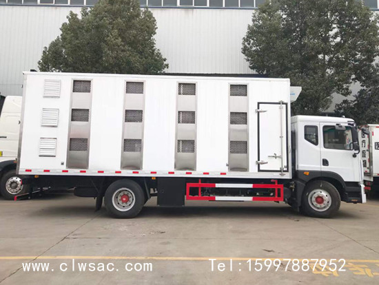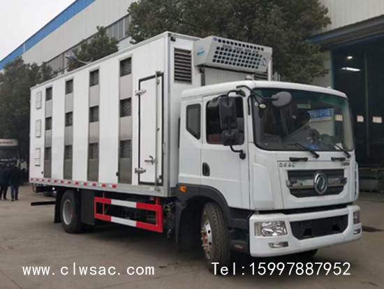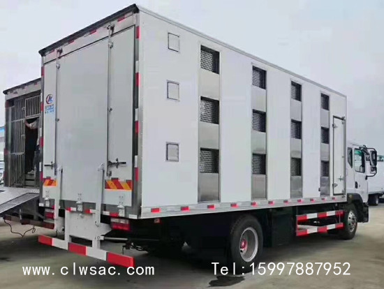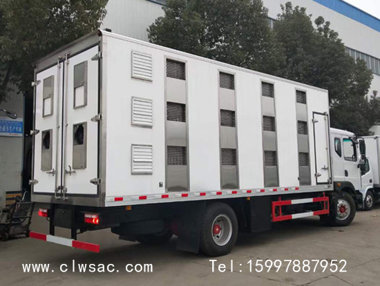 程力东风D9多利卡畜禽运输车:箱体内为全铝合金保温结构,外部部分玻璃钢饰板,厢体采用全封闭框架结构设计,质量轻、强度高、防锈蚀性强;厢体外层采用保温材质,顶部采用玻璃钢,中间夹层为保温材质,有效避免高温传导,控制厢体内部温度;