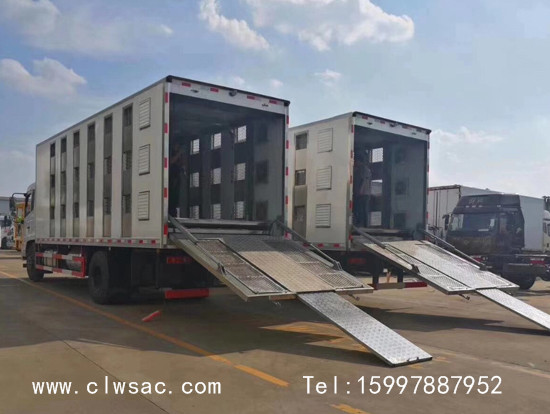 鲜活畜禽运输车又称为畜禽运输车,雏禽运输车,恒温运猪车,运猪车,畜禽运输车是程力专用汽车股份有限公司所开发的一款专门用于活禽,畜禽运输市场的一款高端运输车畜禽运输车主在增强活禽,畜禽在运输过程中的舒适度,减少死亡率,提高运输效率。程力畜禽运输车车厢采用外玻璃钢内不锈钢材质,板材中间采用高密度聚氨酯发泡材料保温层,厢体内部分四层,层高可调可适用于运输活禽,大型牲畜,每层可分若干栏,防止牲畜在运输过程中相互踩踏,聚堆,减少死亡率,同时均匀车厢各部分重量保证车辆行驶过程中的安全。该车安装降温及加热设备最大限度满足在舒适温度中运输活禽及牲畜,厢壁安装电子静音风扇,在运输过程中调节车厢内空气保证空气新鲜。程力畜禽运输车安装有自动喂食,喂水设备,保证在运输过程中活禽及牲畜能吃饱喝足减少因饥饿及干渴造成的死亡。车辆还安装有清洗消毒装置,运输完成后自动清洗消毒车厢,避免车厢异味及疫情传播。车厢尾部安装有液压尾板,方便活禽及牲畜的装卸,最大限度提高装卸效率。该款车型很好的整合了活禽在运输过程中对温度,湿度,水,食物的需求,同时能够自动清洗消毒,避免疫情在不同批次的活禽及牲畜中传播,能够最大限度降低活禽及牲畜在运输过程中的死亡率,提高运输效率和经济效益。