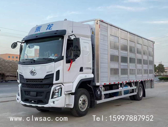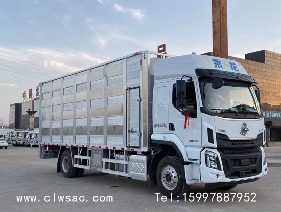 程力东风柳汽乘龙畜禽运输车高端运猪车全铝合金畜禽车,箱体全铝合金制作。降低自重,节能减排,方便消毒,可进高温雾化消毒仓