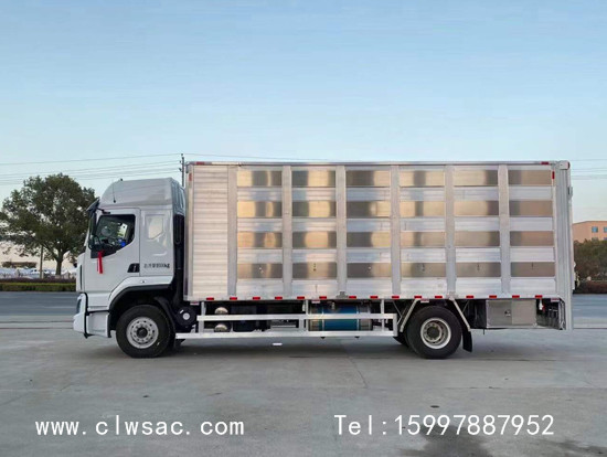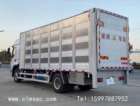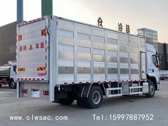 程力全铝合金运猪车全铝合金制做,自带喷淋浴系统,污水粪便收集箱,双温机组,加热和制冷,前面配的有隔仓,前面和侧面有全自动通风窗口,可在驾驶室操作控制,让车辆行驶过程中保证良好的通风性。尾门可向下打开,当作爬梯用,让小猪仔走进车厢内,分为三层或四层,自动升降,一层装满后升上去接着装下一层。拉猪车双层或三层带液压运生猪车批发市场猪仔运输车箱体配置。