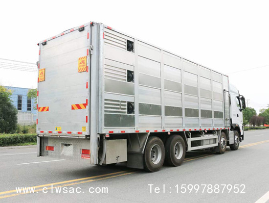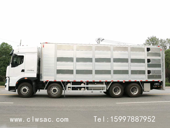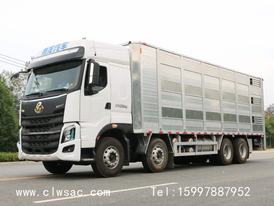 备注:选装后部液压围板结构,后部装有升降机和液压尾板,液压尾板收起状态的水平长度为280mm,液压尾板重量550kg;车厢顶部可选装升降板或通道翻门用于装卸畜禽及清洗厢体时使用,中间有隔栏,侧面有滑窗及风扇,前部工作间选装加热器,制冷空调机组等,选装后部不带升降机和液压尾板结构.选装导流罩,选卧铺无侧窗,选金色商标,选装前格栅,选号码牌架,选装绿玻璃,选遮阳罩饰板, 选装脚踏板饰板,选装无脚踏饰板,选装翼子板,选装后视镜,选装驾驶室顶部“乘龙”标志.选装箱体后门结构;选装两层、三层、四层仓栅结构,选装箱体前部带单开门结构和封板结构;货箱底板到仓栅顶部的高度为2570mm,2600mm;该车专用装置为箱体,主要用于畜禽运输.侧防护材质:矩形铝合金型材6063-T5,连接方式螺栓连接.后防护与车辆结构为一体,两端与车辆构件焊接,中部与车架焊接,下部横杆材料Q235,断面尺寸120×50mm,下边缘离地高490mm.安装带有卫星定位功能的行驶记录仪.ABS型号/企业:ABS-E 4S/4M/威伯科汽车控制系统(中国)有限公司.YCK09400-60对应油耗值为36.27L/100km,YCK11460-60对应油耗值为36.45L/100km,WP10H400E62对应油耗值为36.76L/100km,YCK08350-60对应油耗值为36.10L/100km,YCK11430-60对应油耗值为36.45L/100km,YCK11500-60对应油耗值为36.45L/100km, WP10.5H430E62对应油耗值为36.11L/100km.