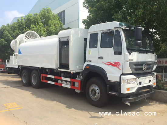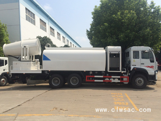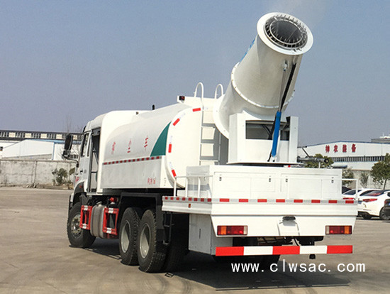程力威重汽专底后双桥15吨抑尘车是程力专用汽车股份有限公司根据环卫市场需求开发的一种新型多功能雾炮抑尘车。