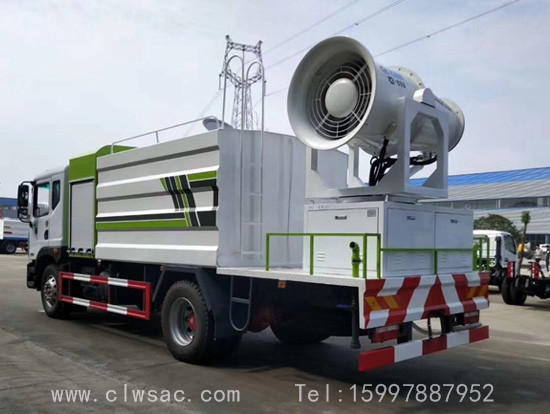 罐体采用Q235优质碳钢制作,带前冲、后洒、侧喷、后平台高炮、风送式雾炮、柴油发电机等