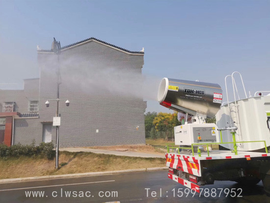 2.工作效率高、喷雾速度快;对容易引起尘埃的堆场喷水除尘时,喷出的雾粒细小、与飘起的尘埃接触时,形成一种潮湿雾状体,能快速将尘埃抑制降沉,雾量沉降率可达95%。