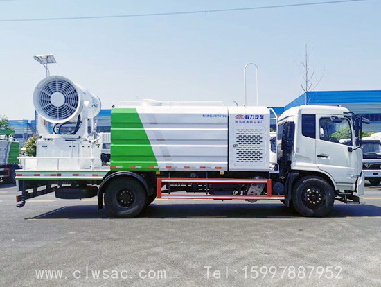 程力威东风天锦12吨雾炮抑尘洒水车是程力专用汽车股份有限公司根据环卫市场需求开发的一种新型多功能雾炮抑尘车。