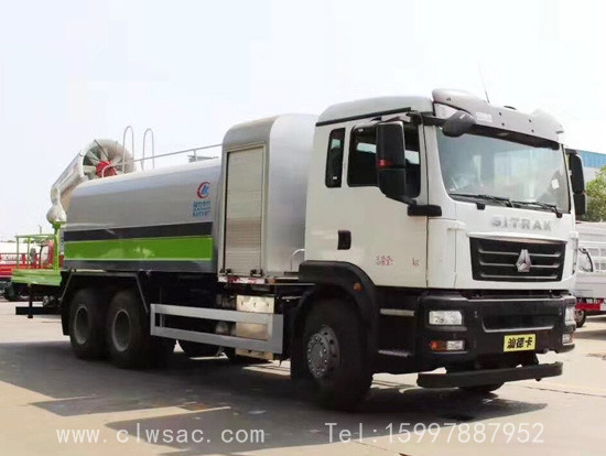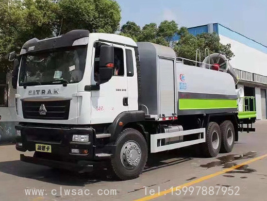 程力威重汽汕德卡16吨雾炮抑尘洒水车是程力专用汽车股份有限公司根据环卫市场需求开发的一种新型多功能雾炮抑尘车。