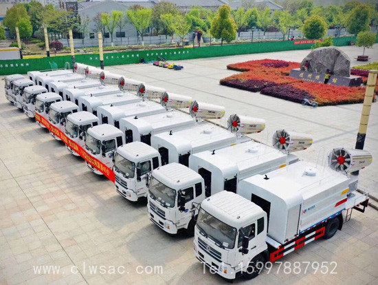 2.工作效率高、喷雾速度快;对容易引起尘埃的堆场喷水除尘时,喷出的雾粒细小、与飘起的尘埃接触时,形成一种潮湿雾状体,能快速将尘埃抑制降沉,雾量沉降率可达95%。
