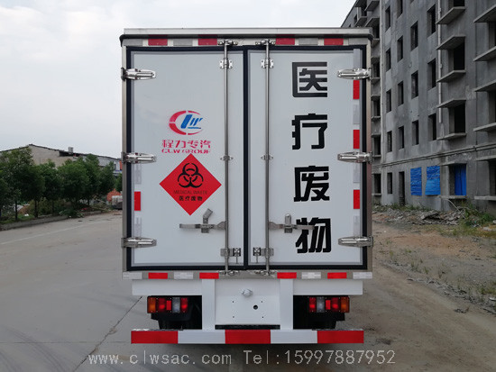 4、医疗废物运输车安装功率相当的制冷机组,在运输过程中,可通过制冷机组将盛装货物厢内的温度控制在规定要求的温度范围内,抑制货物盛装仓内细菌的繁殖。