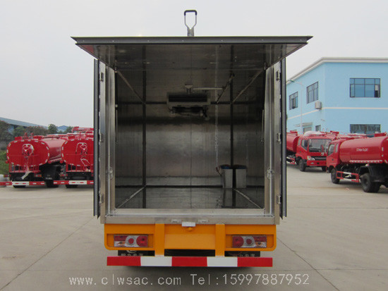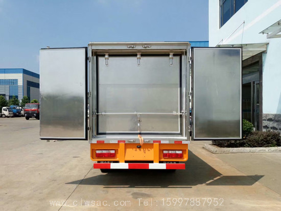 厢体材质:外玻璃钢,内不锈钢制作,中间加保温板,铝合金型材包边,选装厢体右侧单开侧门,配国内知名品牌制冷机组,制冷温度-5度;后门为双层密闭结构,并采用迷宫式密封条。