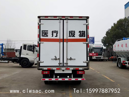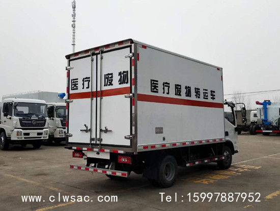 3、程力医疗废物运输车厢体前、后和两侧设有医疗废物专用和警识标识。驾驶室两侧喷涂医疗废物转运单位名称。