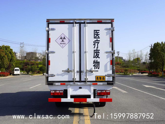 3、程力医疗废物运输车厢体前、后和两侧设有医疗废物专用和警识标识。驾驶室两侧喷涂医疗废物转运单位名称。