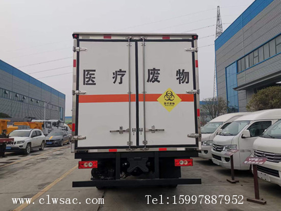 3、程力医疗废物运输车厢体前、后和两侧设有医疗废物专用和警识标识。驾驶室两侧喷涂医疗废物转运单位名称。