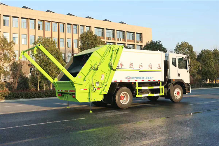 上装配置:箱体容积10立方,尾部翻转摆臂船形斗式,带双液压支腿,侧面、尾部双污水箱,压实阀,海普瑞斯油缸,CNA总线控制系统。