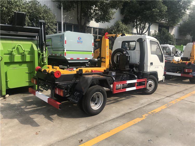 勾臂式垃圾车又称为车厢可卸式垃圾车被广泛适用于城市街道垃圾处理,可一车配备多个垃圾箱,带自卸功能,液压操作,方便倾倒。该车的箱体部分完全由液压系统来控制。