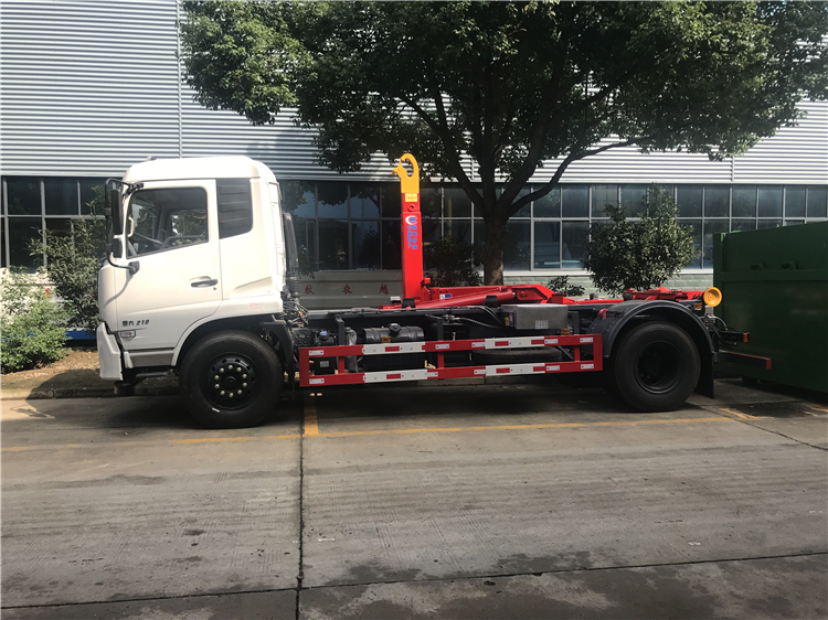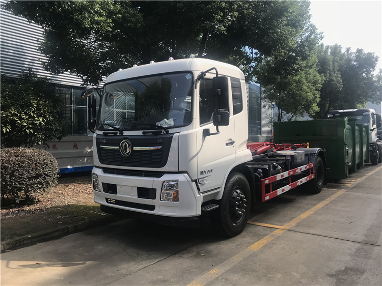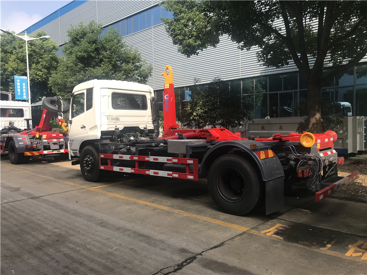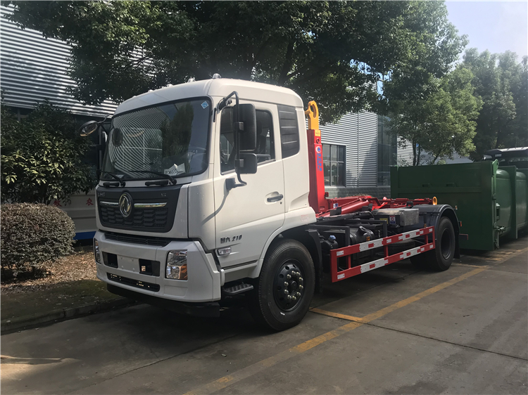 程力东风天锦勾臂式垃圾车特点:勾臂式垃圾车又称为车厢可卸式垃圾车被广泛适用于城市街道垃圾处理,可一车配备多个垃圾箱,带自卸功能,液压操作,方便倾倒。该车的箱体部分完全由液压系统来控制。