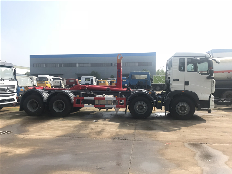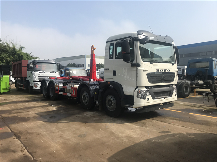 程力重汽豪沃勾臂式垃圾车特点:勾臂式垃圾车又称为车厢可卸式垃圾车被广泛适用于城市街道垃圾处理,可一车配备多个垃圾箱,带自卸功能,液压操作,方便倾倒。该车的箱体部分完全由液压系统来控制。