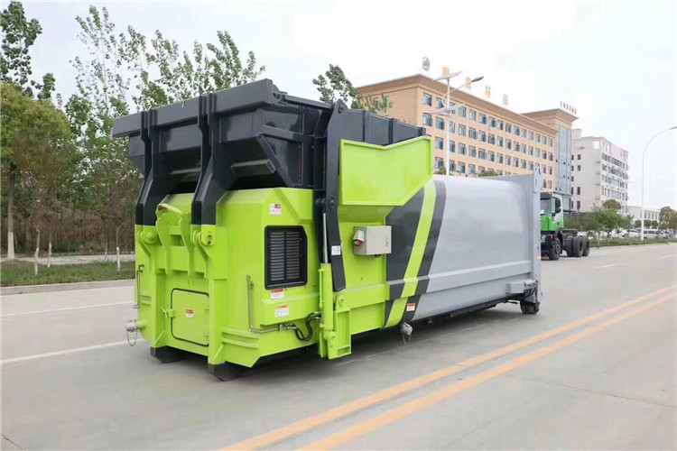 程力重汽豪沃勾臂垃圾车可配置使用移动压缩垃圾站,程力移动压缩垃圾站图片: