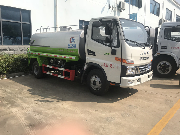 程力江淮骏铃V5洒水车,采用江淮骏铃V5底盘,驾驶室为单排1900宽,江淮五十铃HFC4DA1-2D(江淮五十铃120马力),星锐5档变速箱,4.5吨后桥,700R16轮胎,170*6大梁,气刹,电动门窗,中控锁,遥控钥匙,多功能方向盘,原装空调,洒水车上装,罐体容积5吨,带有前冲,后洒,侧喷,后平台高炮等标准配置。