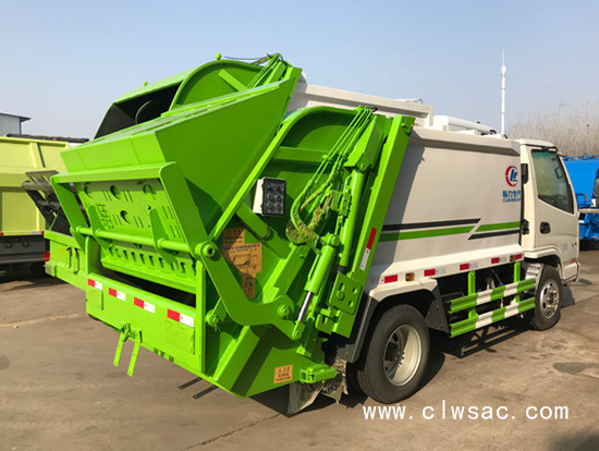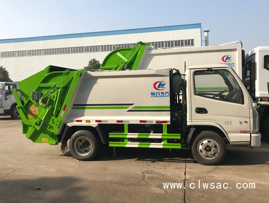 压缩式垃圾车(以下简称压缩垃圾车)是用于城镇袋装、桶装、散装生活垃圾物的收集、运输、卸料作业的专用车辆。垃圾被车载垃圾推进器又称负压机构推压入车箱,从而使垃圾较高密度、较均匀地分布在车箱内,直至装满为止;该垃圾车的收运方式是目前世界上广泛采用的垃圾收运方式,其专用装置的功能均以汽车发动机为动力,通过液压机构手动或电控来实现。车辆的箱体、装填器又称斗体及污水箱均采用优质炭钢板全密封焊接结构,具有强度高、重量轻、不产生二次污染等优点。