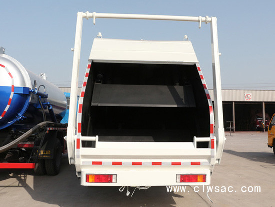 压缩式垃圾车(以下简称压缩垃圾车)是用于城镇袋装、桶装、散装生活垃圾物的收集、运输、卸料作业的专用车辆。垃圾被车载垃圾推进器又称负压机构推压入车箱,从而使垃圾较高密度、较均匀地分布在车箱内,直至装满为止;该垃圾车的收运方式是目前世界上广泛采用的垃圾收运方式,其专用装置的功能均以汽车发动机为动力,通过液压机构手动或电控来实现。车辆的箱体、装填器又称斗体及污水箱均采用优质炭钢板全密封焊接结构,具有强度高、重量轻、不产生二次污染等优点。